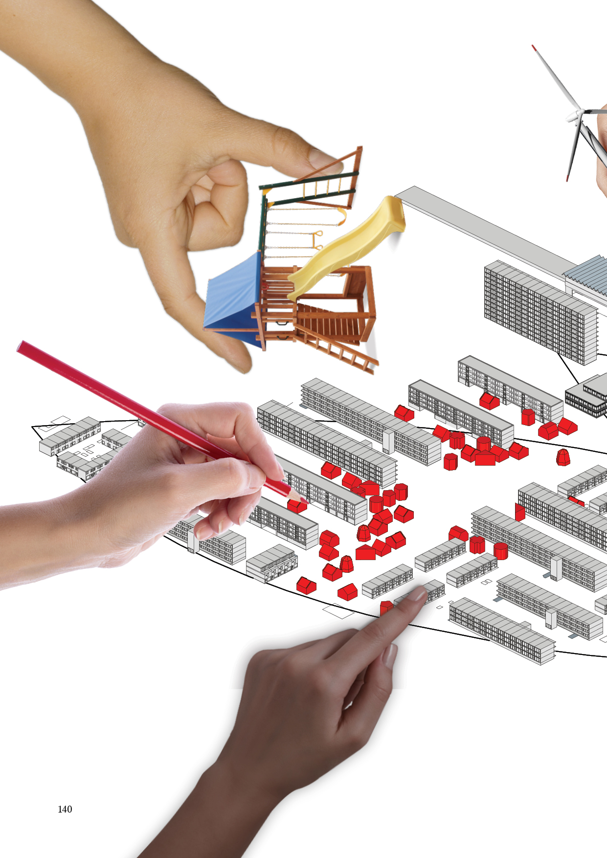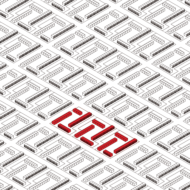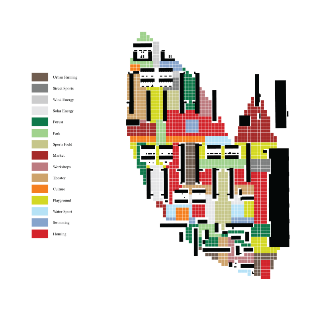 In a study on deprived neighbourhoods in the Netherlands the philosophy of the neighbourhood unit proved to be essential in understanding these neighbourhoods. Re-establishing the connectedness through a collective decision making process the residents, housing associations and local governments can be brought together. By creating a walkable area, defined by the laws of the founders of the neighbourhood unit, a territory is created where new functions can take place. The surface is divided in equal partitions, giving each resident an area of responsibility within the neighbourhood. This will keep the neighbourhood vibrant and lively, forcing residents to be involved in their neighbourhood through an ongoing developmental process.