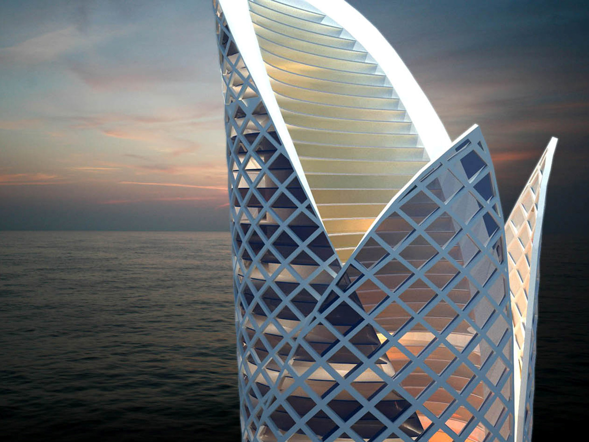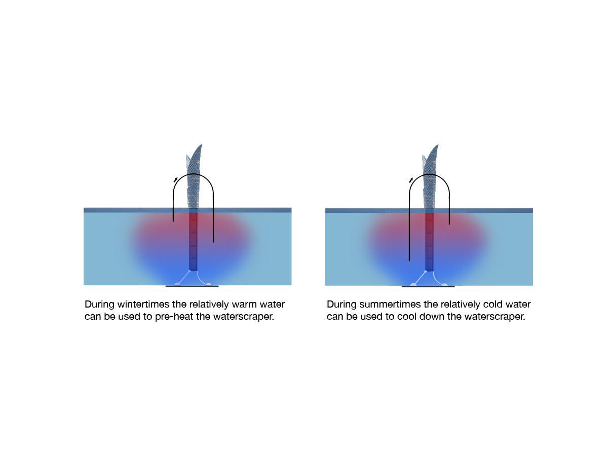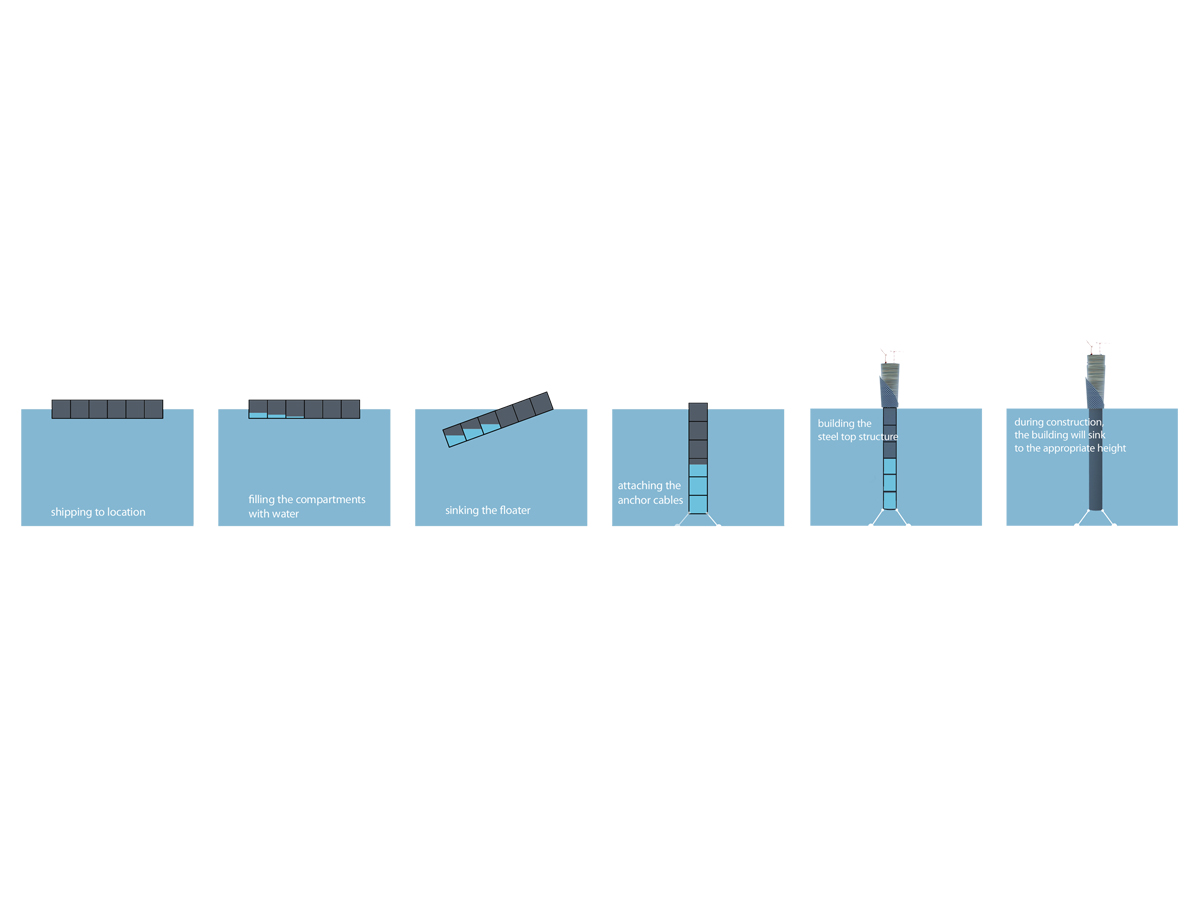Waterscraper is a submission for the eVolo skyscraper competition. The main goal of the competion is the design of a skyscraper of the future, built with contemporary technology. As part the architecture class at the AVANS University, we entered the Waterscraper project. As global warming is getting a bigger issue, making sea levels rise, buildable land is getting scarce. By designing the Waterscraper this is not an issue anymore, making it possible for micro-societies to live on the water.